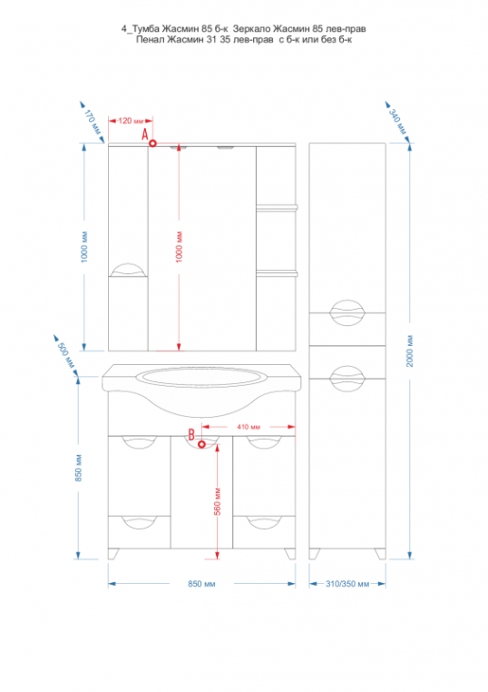 Зеркальный шкаф Misty Жасмин 80 П-Жас02085-011СвП