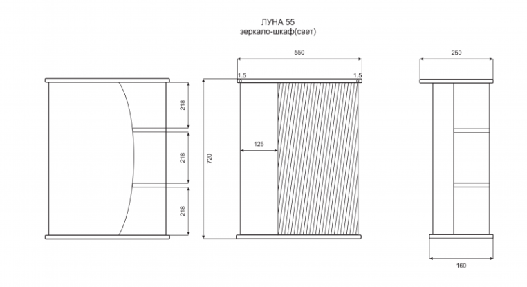 Зеркальный шкаф Misty Луна 55 Э-Лун02055-01СвЛ