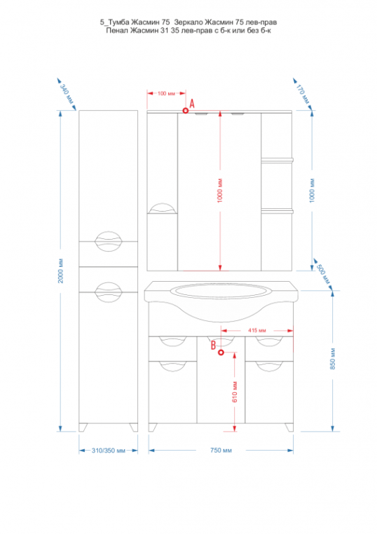 Зеркальный шкаф Misty Жасмин 75 П-Жас02075-031СвЛ