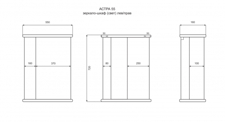 Зеркальный шкаф Misty Астра 55 Э-Аст04055-01СвП