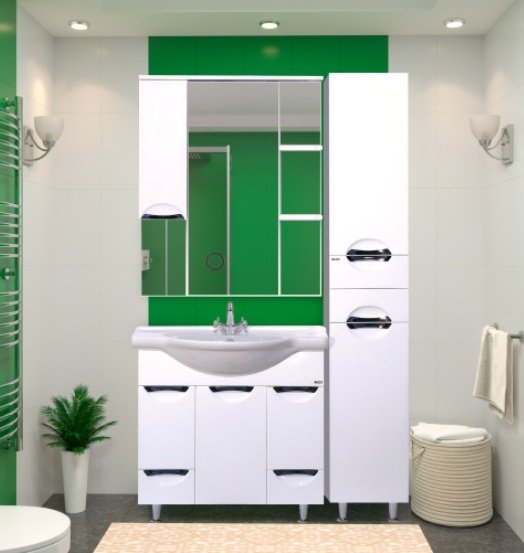 Зеркальный шкаф с подсветкой L Misty Жасмин 75 П-Жас02075-011СвЛ белая эмаль