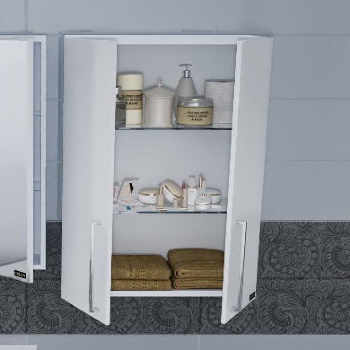 Ручка хром -2 шт., на дверках петли плавного закрывания, стеклянные полочки - 2 шт.