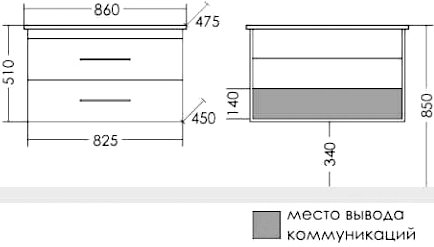 Тумба с раковиной СанТа Вегас 85 подвесная, 2 ящика (226033+Оскар85)