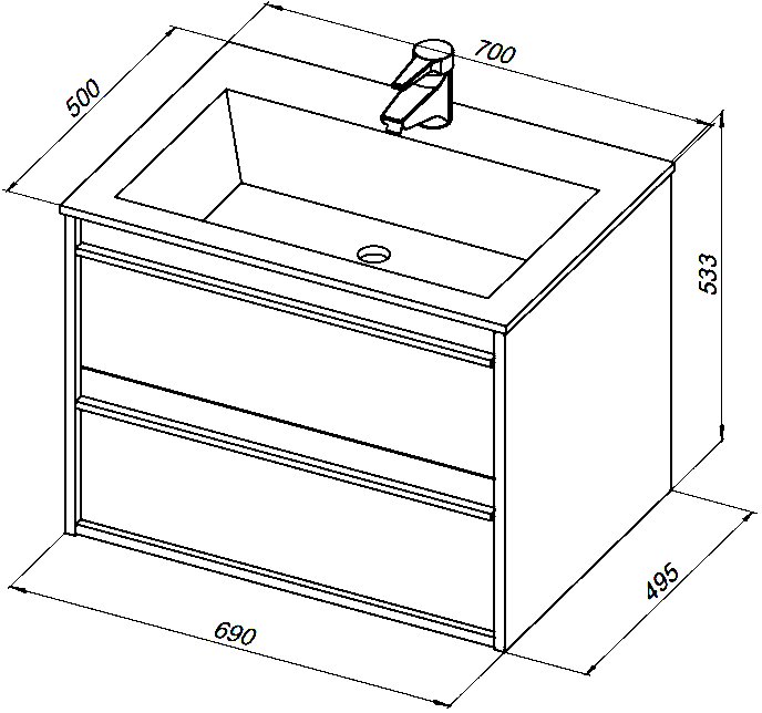 Тумба с раковиной Aquanet Lino 70 белый матовый (00253902+00270159)