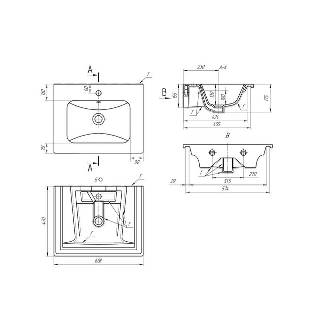 Тумба с раковиной Caprigo Novara 60 см бланж 35915-TP811+Эйфория-60