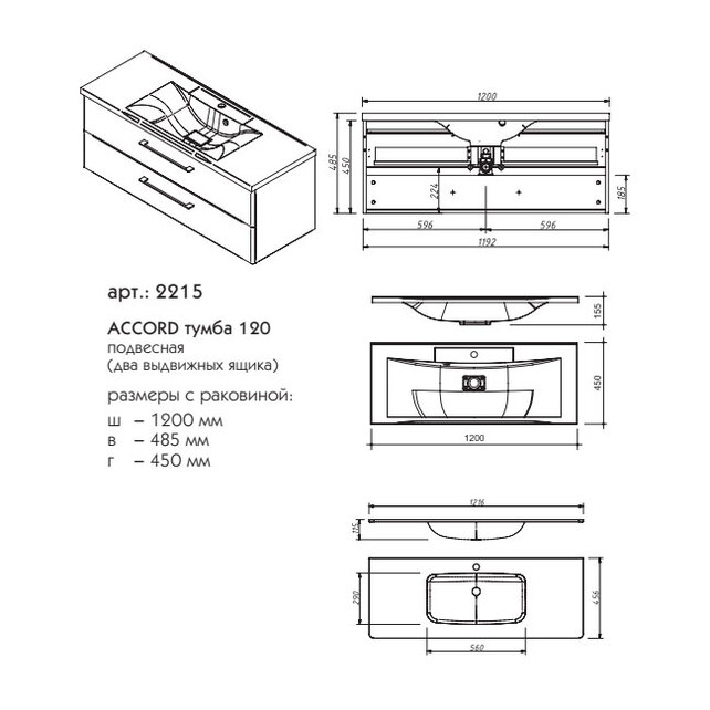 Тумба с раковиной Caprigo Accord 120 см графит 2215-TP810+GC18R 2215