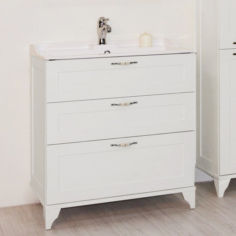 Мебель для ванной комнаты из коллекции «Акватон Леон» украсит вашу ванную комнату. Она создана специально для любителей утонченного стиля ретро. Гарнитур включает в себя тумбу с раковиной, зеркало и шкаф-пенал. Качественная ламинированная МДФ, использованная при изготовлении мебели, продлевает срок ее службы и делает невосприимчивой к агрессивному воздействию водной среды. Фасады отделаны текстурированной под натуральное дерево пленкой по технологии мембранно-вакуумного прессования. Ящики и дверцы оснащены доводчиками, обеспечивающими их плавное и бесшумное закрывание.Фурнитура из бронзы с элегантными белыми вставками имитирована под старину. В комплект входит прямоугольная раковина из искусственного мрамора. В тумбе предусмотрена возможность подключения труб водоснабжения и канализации не только в стену, но и в пол, что значительно упрощает ее установку