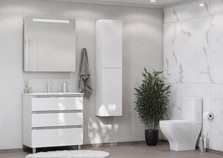 Модуль под раковину THE GAP в цвете белый глянец обладает универсальным современным дизайном и функциональностью. Материал корпуса и фасада тумбы влагостойкая ЛДСП. Металлическая ручка во всю ширину модуля удобна в использовании и вместе с направляющими с функцией soft-close делает процесс открывания ящиков легким и приятным. Нижняя часть ручки обработана под углом, что предотвращает скопление воды и пыли. Ручка защищает фасады модуля от попадания капель воды с раковины, а также защищает углы модуля от ударов и износа. Внутренняя отделка ящиков выполнена в цвете бежевый текстиль, приятна на ощупь и предотвращает скольжение предметов. Пространство верхнего ящика разделено на три части, что позволяет хранить предметы для ванной комнаты в идеальном порядке. Благодаря универсальному дизайну модули под раковину THE GAP могут сочетаться с различными вариантами зеркал и зеркальных шкафов из коллекций THE GAP ORIGINAL, ANETO, VICTORIA NORD. Сифон для раковины приобретается отдельно