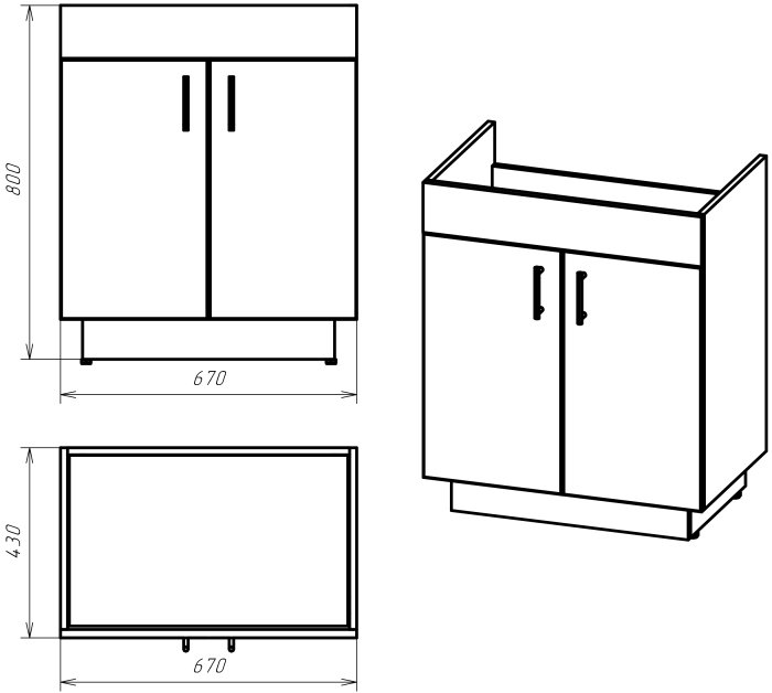 Комплект мебели Misty Амбра 70 2 двери (П-Амб0070-011ПР+5007700+П-Амб0270-0322ЯЛ)
