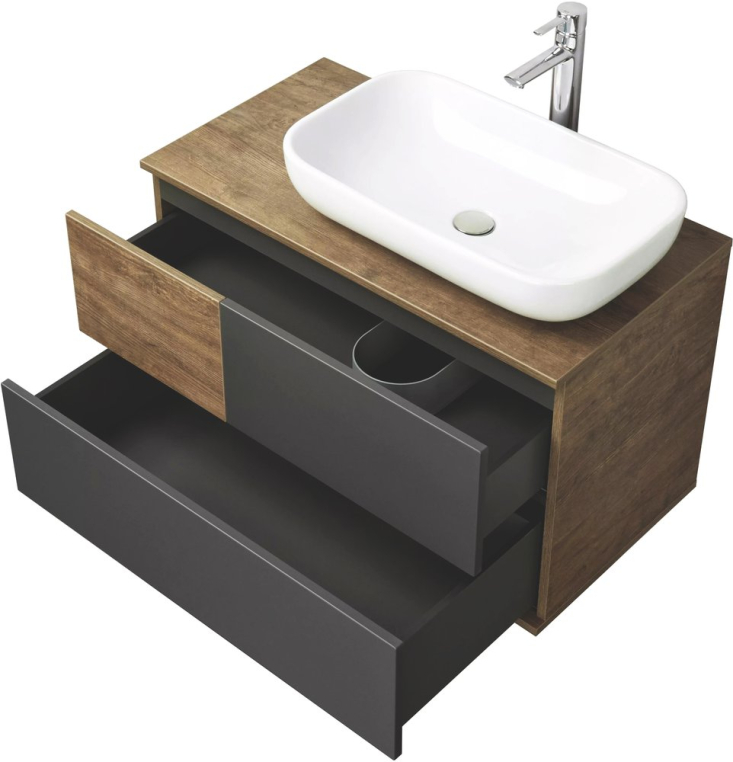 Тумба умывальник состоит из двух вместительных ящиков, открывающихся с помощью системы push-to-open, нижний ящик комплектуется системой организации пространства, которая препятствует смещению мелких косметических и гигиенических средств Интегрированная по бокам зеркального полотна подсветка с мягким, рассеянным светом, идеальна для комфортных утренних процедур и макияжа, а используемые в подсветке светодиоды, экономят до 50% потребляемой мощности и служат в 2 раза дольше люминесцентных ламп