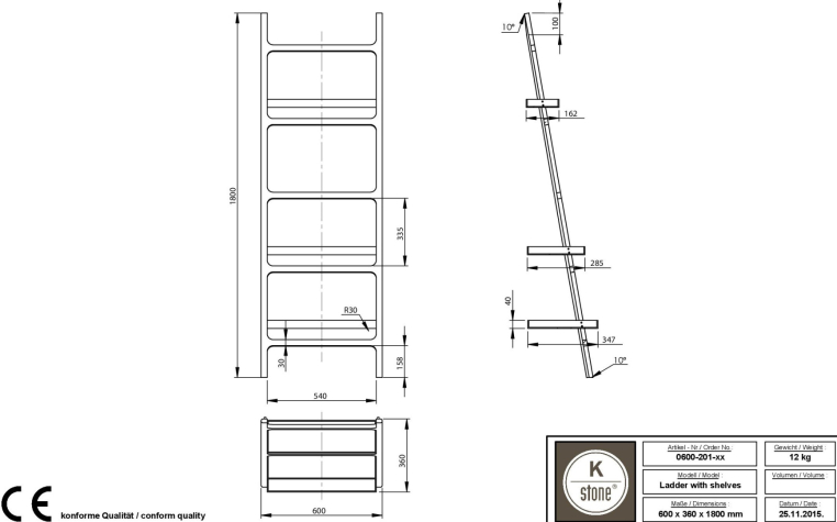 Аксессуар лесенка с полочками Knief 0600-201-03 60х36х180H черный матовый