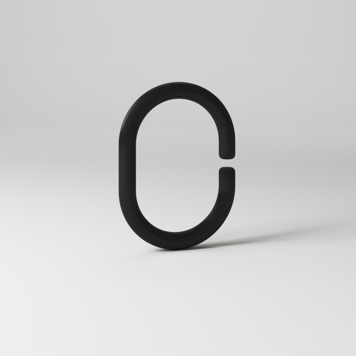 Набор из 12 колец для шторы в ванную комнату в форме буквы С. Кольца изготовлены из пластика стильного антрацитового цвета, благодаря чему подойдут как к темной шторе, так и к интерьеру в темных тонах. Гарантия — 1 год.