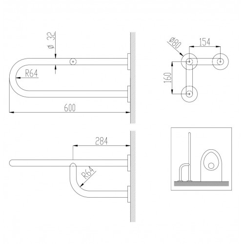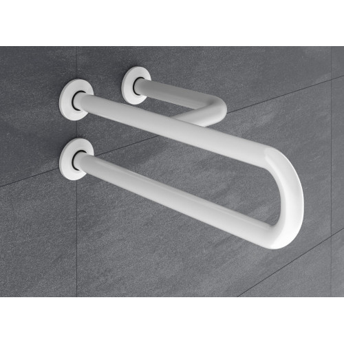 Поручень Nofer Inox 15048.W полукруглый левый с тремя точками опоры выполнен из нержавеющей стали AISI 304. Три точки опоры гарантируют предельную прочность и готовность выдержать любую нагрузку, белый. Диаметр Ø 32 мм, толщина 1,5 мм. 38 мм от стены.