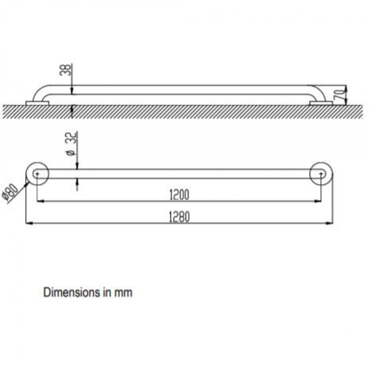 Прямой опорный поручень Nofer Inox 15054.120.S 1200 мм (матовая нержавеющая сталь). Толщина поручня составляет 32 мм, что позволяет выдерживать нагрузки вплоть до 120 кг. При установке в общественных санузлах рекомендуется устанавливать также и откидные поручни с другой стороны унитаза.