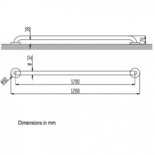 Поручень прямой опорный для крепления на стену. Подходит для поддержки в раковинах, туалетах, душах и ваннах. Предназначен для людей с ограниченными возможностями. Изготовлен из нержавеющей стали AISI 304. Две опорные точки. Длина (между центрами опор): 1000 мм. Диаметр 32 мм, толщина 1,5 мм. 38 мм от стены. Рекомендуемая высота установки 70-75 см от пола.
