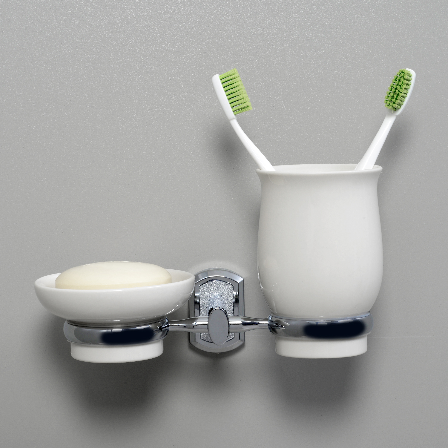 Материал металл, уплотнительные пластиковые кольца, фарфор Покрытие хромоникелевое В комплект входит: C185 Мыльница C184 Стакан Oder C174 Держатель двойной