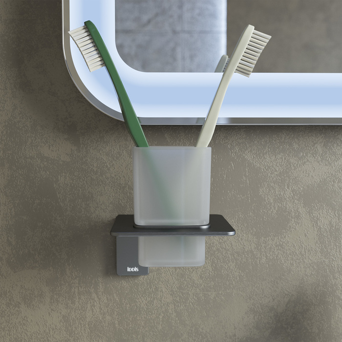 Подстаканник Slide актуального графитового оттенка. Благодаря четким прямым линиям и функциональному дизайну подойдет для интерьера любой современной ванной комнаты. Мягкая уплотнительная прокладка надежно фиксирует стакан из матового стекла в держателе и предотвращает повреждение изделия.