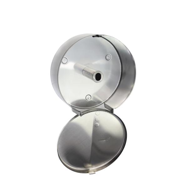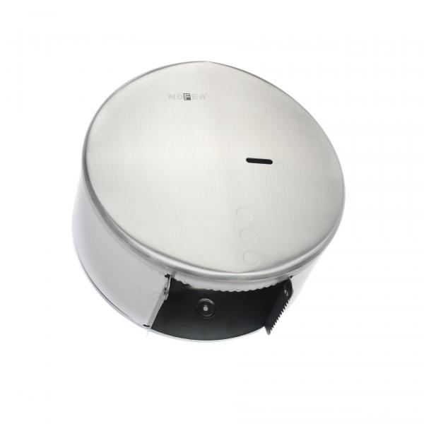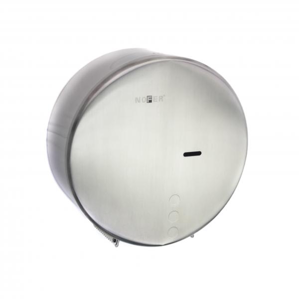 Современный диспенсер для туалетной бумаги Nofer (Нофер) industrial evo 268х265х135 матовый гармонично впишется в любой интерьер общественного туалета и станет в нем незаменимым аксессуаром. Благодаря своему большому диаметру данная модель подойдет для использования любых рулонов бумаги. Как основная часть корпуса, так и втулка диспенсера изготовлена из нержавеющей стали.