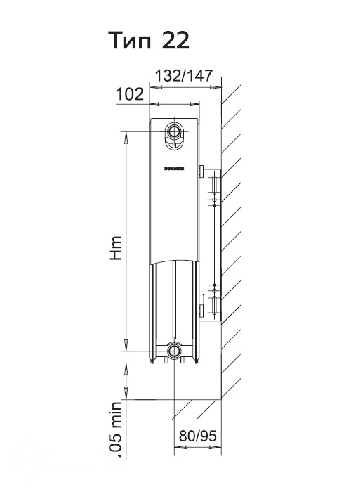 Радиатор соответствует требованиям ГОСТ 31311-2005. Тепловая панель из двух стальных штампованных листов низкоуглеродистой качественной стали толщиной 1,2 мм, сваренных между собой. Радиатор оснащен воздуховыпускной решёткой и боковыми декоративными панелями. Для подключения к системе отопления каждый радиатор оснащён отверстиями с внутренней резьбой G1/2”