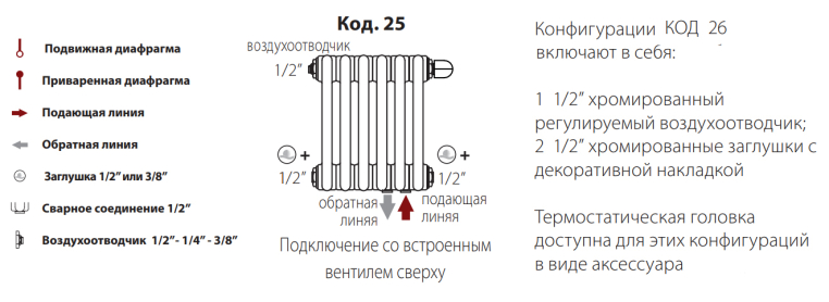 - Воздухоотводчик и декоративные заглушки – в комплекте
