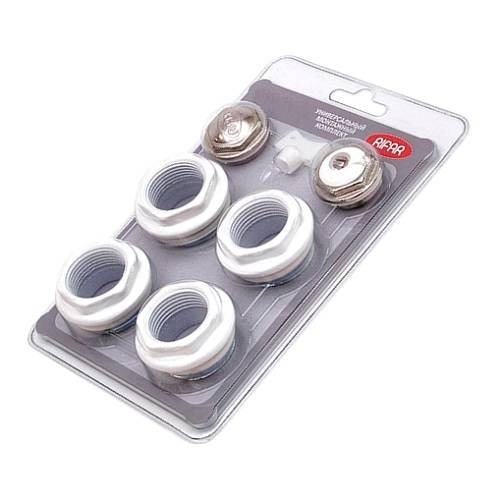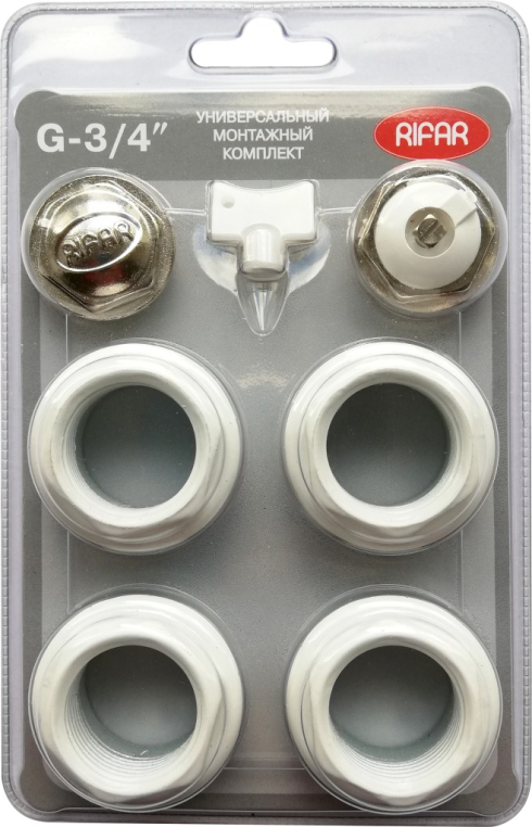 Универсальный монтажный комплект G-3/4" Rifar предназначен для монтажа радиаторов с диаметром трубы 3/4". Комплектующие необходимы при монтаже радиатора. Переходники из прочного материала не подвержены коррозии, гарантируют прочность и герметичность конструкции.