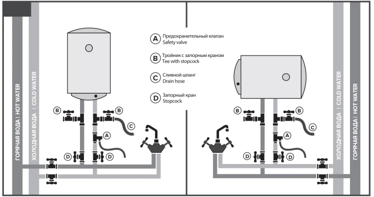 Встроенный регулятор температуры позволяет вручную задавать желаемую температуру нагрева воды. А встроенный термостат контролирует температуру нагрева воды внутри бака.