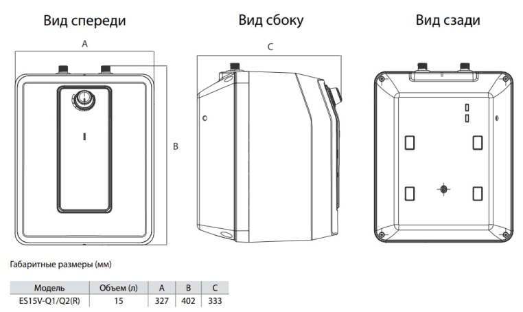 - Глубина: 327 мм