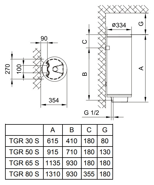 Водонагреватели TGR оборудованы новым регулятором температуры воды, который расположен на нижней крышке нагревателя. Они предназначены только для вертикального настенного монтажа.