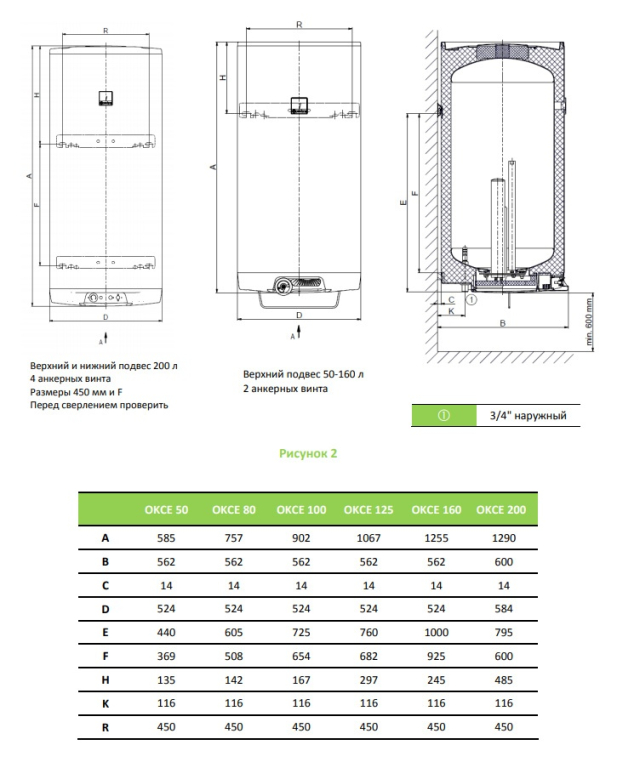 Электрические накопительные водонагреватели объёмом 50–200 литров, предназначенные для навесного монтажа на стену. Расстояние между крепёжными болтами не менялись в течение всего периода существования производства водонагревателей, т.е. отслужившие свой срок изделия могут быть заменены новыми без малейших затруднений. Можно также отдельно заказать кронштейны для монтажа на крепёжных болтах с межцентровым расстоянием 350 мм.