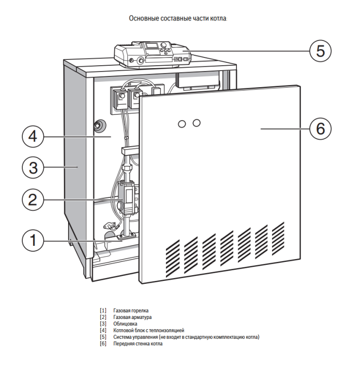 В котлах Logano G334 WS 73 кВт установлена двухступенчатая атмосферная горелка. Она обеспечивает высокоэффективный режим работы даже в том случае, когда требуется использование только части максимальной тепловой мощности. Газ автоматически подается в горелку вместе с атмосферным воздухом, необходимым для горения. При этом не нужно использовать электрический вентилятор.