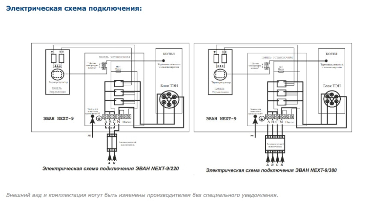 ТЭНы котла Эван Next, как и всех без исключения электрокотлов Эван, сделаны из нержавеющей стали, что повышает срок их службы. Кроме того, в котлах Next реализована блочная конструкция ТЭН на резьбовом соединении, что позволяет существенно упростить его замену. Для работы в системах с принудительной циркуляцией электроотопительный котел Эван Next имеет колодку для подключения циркуляционного насоса. А котлы, выпускаемые после 2018 года, оснащены колодкой для подключения внешнего термостата или модуля дистанционного управления Эван GSM/Wi-Fi Climate. Надежность оборудования в совокупности с невысокой ценой представляют агрегат, уникальный в своем классе.