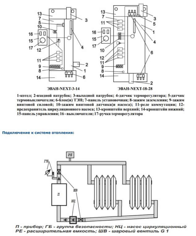 ТЭНы котла Эван Next, как и всех без исключения электрокотлов Эван, сделаны из нержавеющей стали, что повышает срок их службы. Кроме того, в котлах Next реализована блочная конструкция ТЭН на резьбовом соединении, что позволяет существенно упростить его замену. Для работы в системах с принудительной циркуляцией электроотопительный котел Эван Next имеет колодку для подключения циркуляционного насоса. А котлы, выпускаемые после 2018 года, оснащены колодкой для подключения внешнего термостата или модуля дистанционного управления Эван GSM/Wi-Fi Climate. Надежность оборудования в совокупности с невысокой ценой представляют агрегат, уникальный в своем классе.