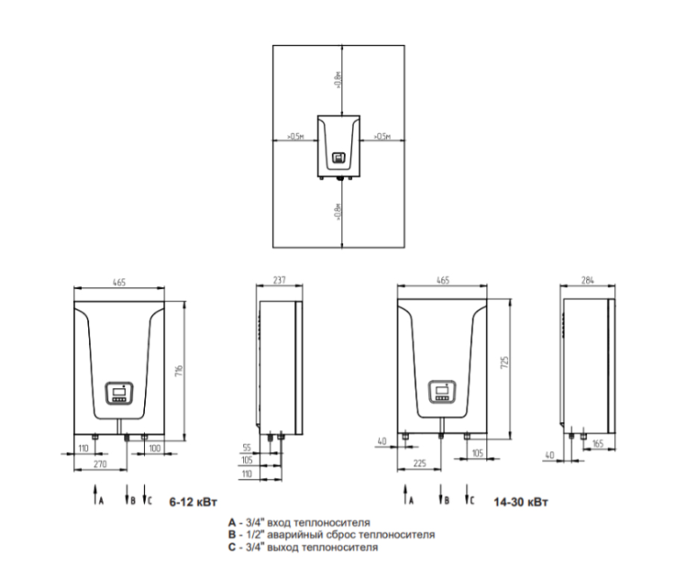 - Расширительный бак – 7,5 литров в моделях 6-12 кВт и 12 литров в моделях 14-30 кВт