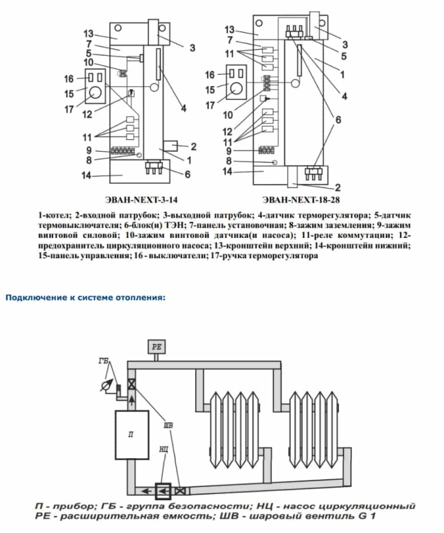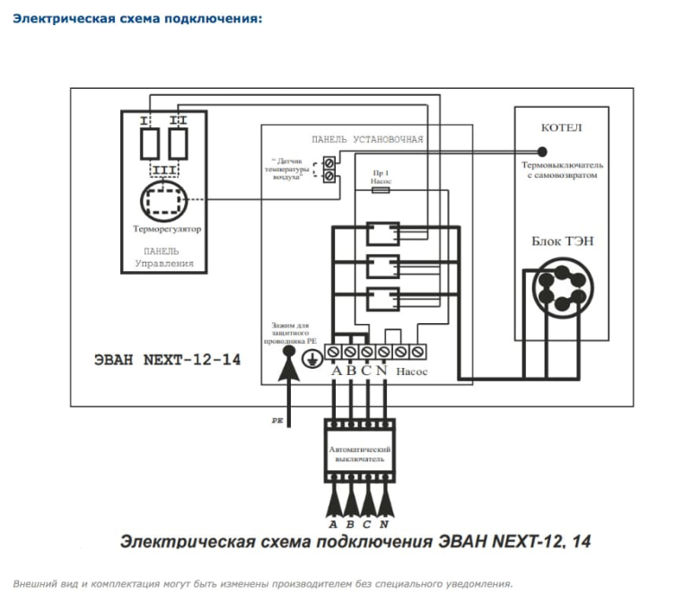 ТЭНы котла Эван Next, как и всех без исключения электрокотлов Эван, сделаны из нержавеющей стали, что повышает срок их службы. Кроме того, в котлах Next реализована блочная конструкция ТЭН на резьбовом соединении, что позволяет существенно упростить его замену. Для работы в системах с принудительной циркуляцией электроотопительный котел Эван Next имеет колодку для подключения циркуляционного насоса. А котлы, выпускаемые после 2018 года, оснащены колодкой для подключения внешнего термостата или модуля дистанционного управления Эван GSM/Wi-Fi Climate. Надежность оборудования в совокупности с невысокой ценой представляют агрегат, уникальный в своем классе.