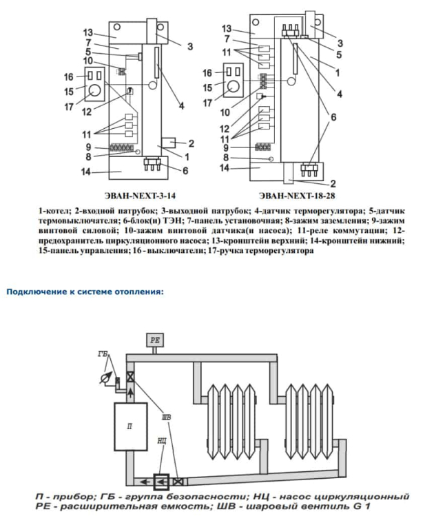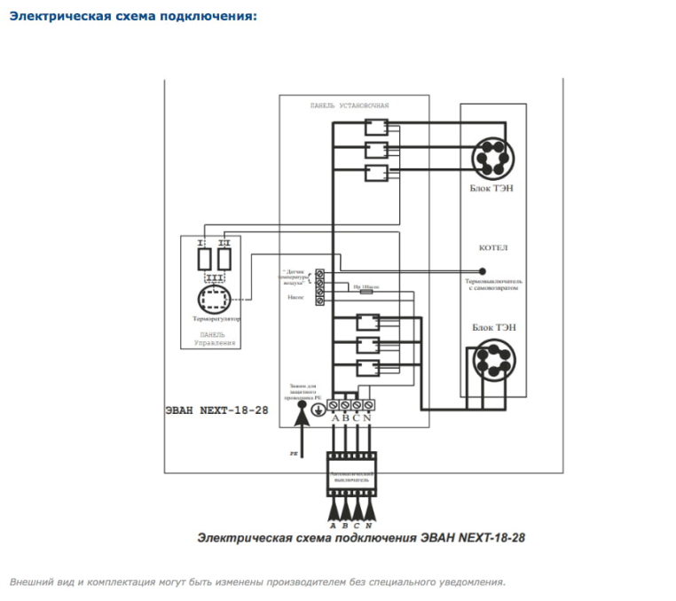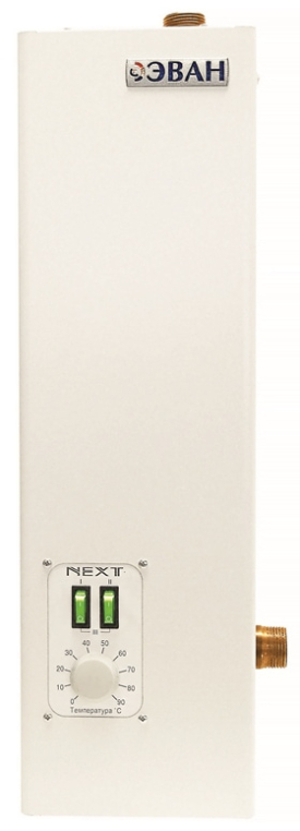 ТЭНы котла Эван Next, как и всех без исключения электрокотлов Эван, сделаны из нержавеющей стали, что повышает срок их службы. Кроме того, в котлах Next реализована блочная конструкция ТЭН на резьбовом соединении, что позволяет существенно упростить его замену. Для работы в системах с принудительной циркуляцией электроотопительный котел Эван Next имеет колодку для подключения циркуляционного насоса. А котлы, выпускаемые после 2018 года, оснащены колодкой для подключения внешнего термостата или модуля дистанционного управления Эван GSM/Wi-Fi Climate. Надежность оборудования в совокупности с невысокой ценой представляют агрегат, уникальный в своем классе.