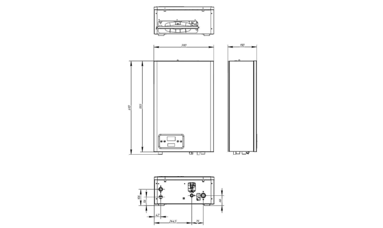 Электрический котел Arderia E 9 (9 кВт) v3 представляет собой электрический котел для отопления и горячего водоснабжения. Котлы выпускаются на собственном производстве Arderia в России. Они сочетают в себе экономичность, высокое качество и надежность. При своих минимальных габаритах (635х390х190 мм), котел включает в себя: бак, трехскоростной циркуляционный насос, группу гидравлической безопасности, кран подпитки и электронное управление с самодиагностикой. Это мини-котельная полного комплекта. К котлу можно подключить трехходовой клапан для бойлера косвенного нагрева.