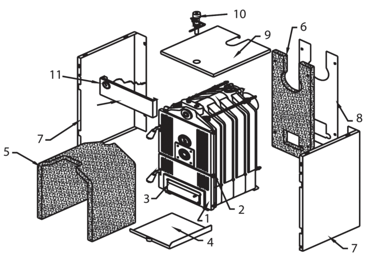 Отличная теплоизоляция котла и оригинальный горизонтальный отвод продуктов сгорания позволяют добиться очень высокого КПД. В качестве топлива возможно использование и угля, и дерева.