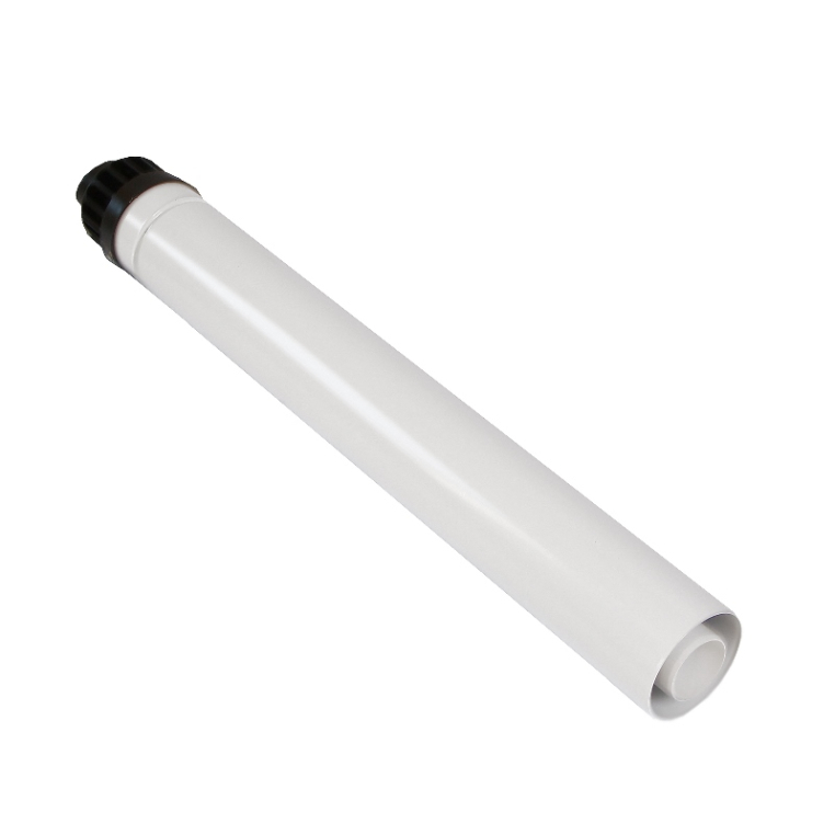 Коаксиальная труба полипропиленовая с наконечником диам. 60/100 мм, длина 750 мм для конденсационных котлов. В комплект поставки входят: наконечник, защищающий от порывов ветра, декоративная накладка из нержавеющей стали на наружную часть стены.
