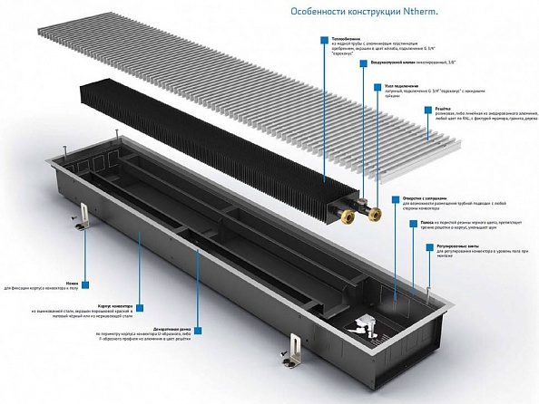 Встраиваемый в пол конвектор Varmann Ntherm 300x90x1000 мм (N 300.90.1000 RR U EV1)