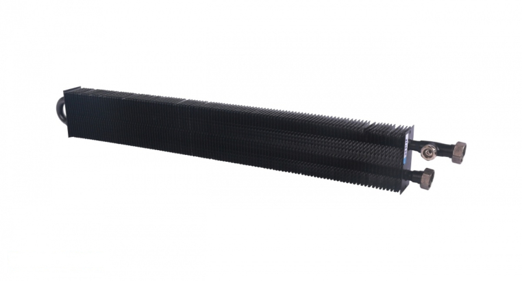 -Теплообменник и корпус конвектора окрашены в чёрный цвет, декоративная крышка закрывает все подключения прибора, что делает все внутренние элементы конвектора невидимыми через декоративную решётку