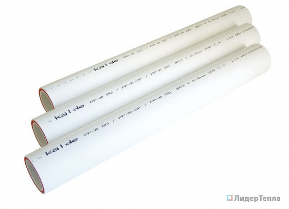 Полипропиленовые трубы Kalde предназначены для использования в системах водоснабжения, отопления, канализации и кондиционирования, а также для промышленных жидкостей. Трубы со слоем стекловолокна - это армированные трубы нового поколения. Их основное преимущество - легкость при монтаже, если сравнивать с трубами, армированными алюминием; твердость, прочность, устойчивость к линейному расширению, по сравнению с обычными трубами из полипропилена; и устойчивость к коррозии, химическим воздействиям, а также высокая гигиеничность, благодаря которым они предпочтительнее металлических труб. Стекловолокно придает трубе необходимую жесткость, поэтому не происходит провисания трубы. Внешний и внутренний слои выполнены из полипропилена PP-R 80.