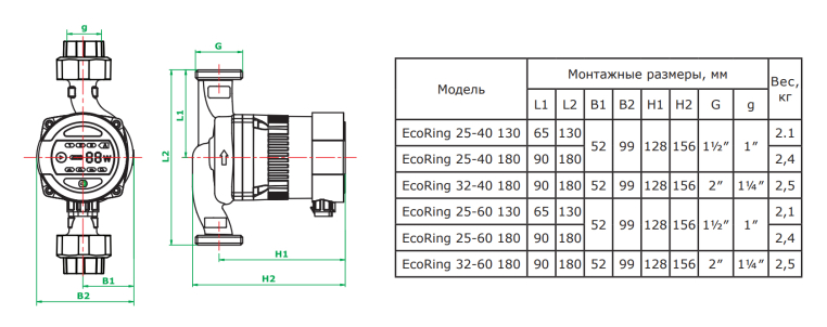 Для управления насосом применяется электронная панель управления с множеством режимов работы и встроенной системой самодиагностики. Насос может работать в автоматическом режиме, который обеспечивает адаптирование насоса к потребностям конкретной системы отопления и позволяет эксплуатировать насос без необходимости производить дополнительные настройки. Насос предназначен для установки на вертикальном участке трубопровода, для чего оснащен резьбовыми соединениями от 1"1/2 до 2"