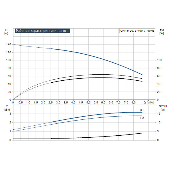 Вертикальный, многоступенчатый центробежный насос CRN Grundfos со всасывающим и нагнетательным патрубками, расположенными на одном уровне (т. н. "ин-лайн"), что обеспечивает возможность установки в горизонтальной однотрубной системе. Материал частей насосов контактирующих с жидкостью, высококачественная нержавеющая сталь. Картриджное уплотнение вала обеспечивает высокую надёжность, безопасность сборки, лёгкое обслуживание и доступ. Насос состоит из основания и головной части. Промежуточные камеры и цилиндрический кожух соединены между собой, а так же с основанием и головной частью насоса при помощи стяжных болтов. Вращение передаётся через разъёмную муфту. Подсоединение к трубопроводу с помощью сочетания фланцев DIN-ANSI-JIS.