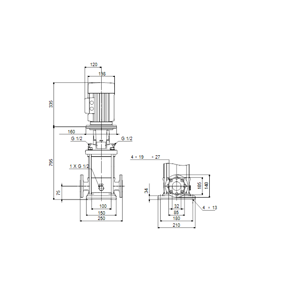 Вертикальный многоступенчатый насос Grundfos CR 3-12 A-FGJ-A-E-HQQE (96516659)