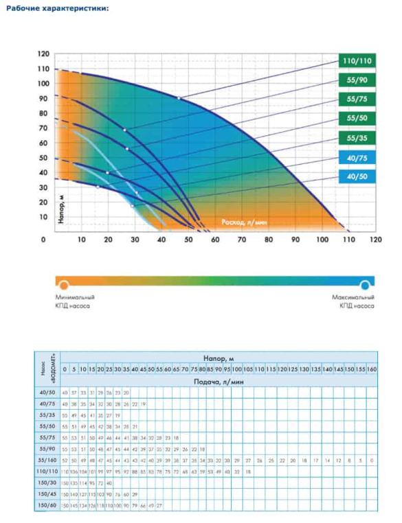 Вследствие самостоятельного выставления «нулевых» зазоров насос имеет большой гидравлический КПД, что повышает напорную характеристику каждого рабочего колеса и позволяет получить желаемое давление, используя меньшее количество насосных ступеней. Наличие двух уплотнителей, изолирующих гидравлическую и электрическую части от промежуточной полости, соединенной с внешней средой, увеличивает надежность и срок службы «Водомета». Встроенный конденсатор позволяет использовать обычных трехжильный кабель вместо четырехжильного, что упрощает монтаж. Насос с индексом «А» оснащен поплавковым выключателем, исключающим работу насоса без воды. Такой насос может быть использован в колодце или другом источнике, имеющем достаточное пространство для использования поплавкового выключателя.