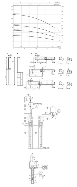 - Оснащение: многоступенчатый погружной насос с радиальными рабочими колесами; Встроенный обратный клапан; Муфта в соответствии с NEMA; Однофазный или трехфазный электродвигатель; Термическое реле электродвигателя для однофазного электродвигателя; Герметизированные электродвигатели