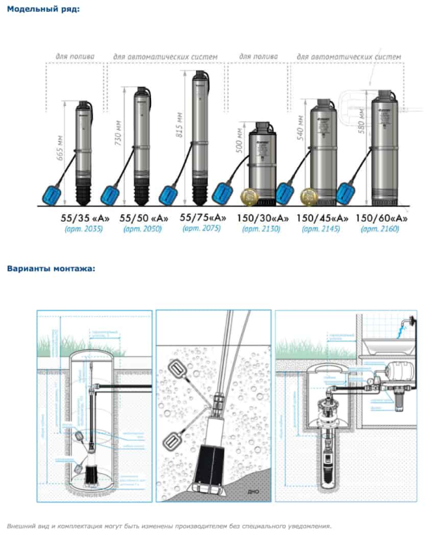 Насос колодезный «Водомет» Джилекс 55/75 А дф с поплавковым выключателем электрический центробежный погружной предназначен для подачи чистой воды из колодцев, резервуаров и открытых водоемов, для систем автоматического водоснабжения дома, орошения сада и огорода – в тех местах, где допускается размещение и монтаж поплавкового механизма. «Водомет» отличается высокой надежностью, неприхотливостью, экономичностью, имеет высокий коэффициент полезного действия. Электродвигатель насоса надежной защищен от перегрева потоком омывающей его жидкости, которая проходит по кольцевому зазору между оболочкой статора и корпусом насоса. «Водомет» оснащен «плавающими» рабочими колесами, которые способны пропускать большие по величине частицы.