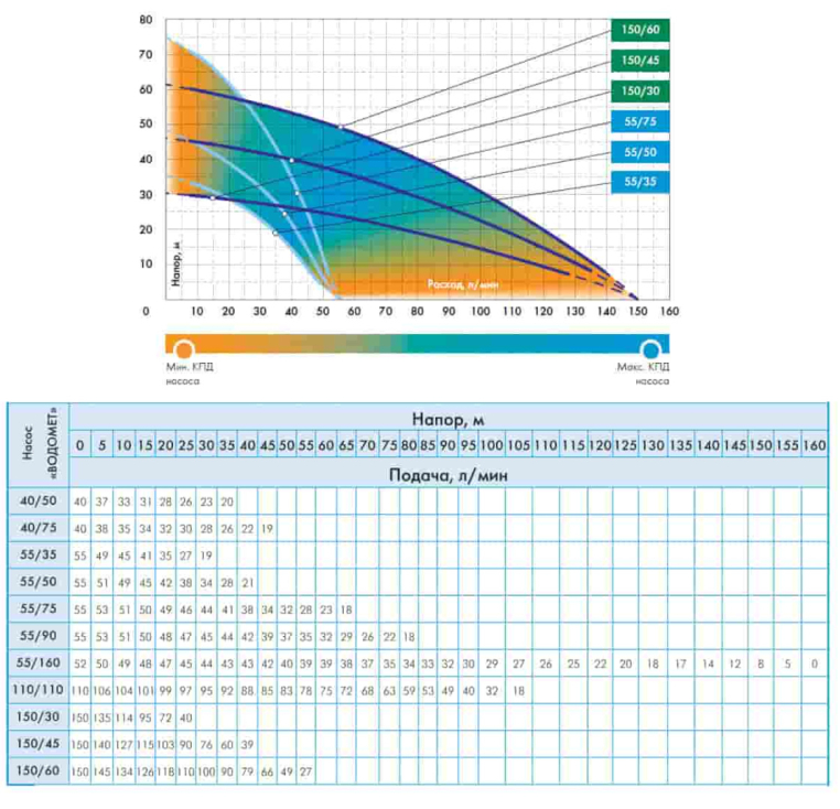 Вследствие самостоятельного выставления «нулевых» зазоров насос имеет большой гидравлический КПД, что повышает напорную характеристику каждого рабочего колеса и позволяет получить желаемое давление, используя меньшее количество насосных ступеней. Наличие двух уплотнителей, изолирующих гидравлическую и электрическую части от промежуточной полости, соединенной с внешней средой, увеличивает надежность и срок службы «Водомета». Встроенный конденсатор позволяет использовать обычных трехжильный кабель вместо четырехжильного, что упрощает монтаж. Насос также оснащен поплавковым выключателем, исключающим работу насоса без воды. Такой насос может быть использован в колодце или другом источнике, имеющем достаточное пространство для использования поплавкового выключателя.