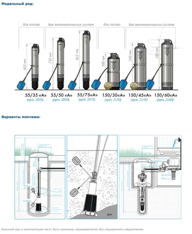 Насос колодезный «Водомет» Джилекс 55/35 А дф с поплавковым выключателем электрический центробежный погружной предназначен для подачи чистой воды из колодцев, резервуаров и открытых водоемов, для систем автоматического водоснабжения дома, орошения сада и огорода – в тех местах, где допускается размещение и монтаж поплавкового механизма. «Водомет» отличается высокой надежностью, неприхотливостью, экономичностью, имеет высокий коэффициент полезного действия. Электродвигатель насоса надежной защищен от перегрева потоком омывающей его жидкости, которая проходит по кольцевому зазору между оболочкой статора и корпусом насоса. «Водомет» оснащен «плавающими» рабочими колесами, которые способны пропускать большие по величине частицы.