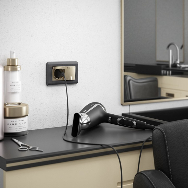 Розетка влагозащищенная с заземлением и шторками, без рамки с крышкой Werkel шампань W1172210